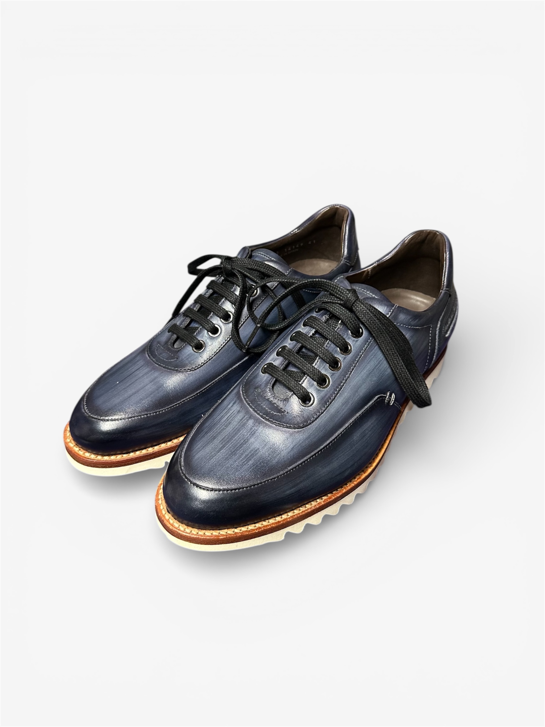 최고의 구두 장인들이 염료를 붓이나 손으로 여러겹 색을 칠해 염색하는 기법 입니다.